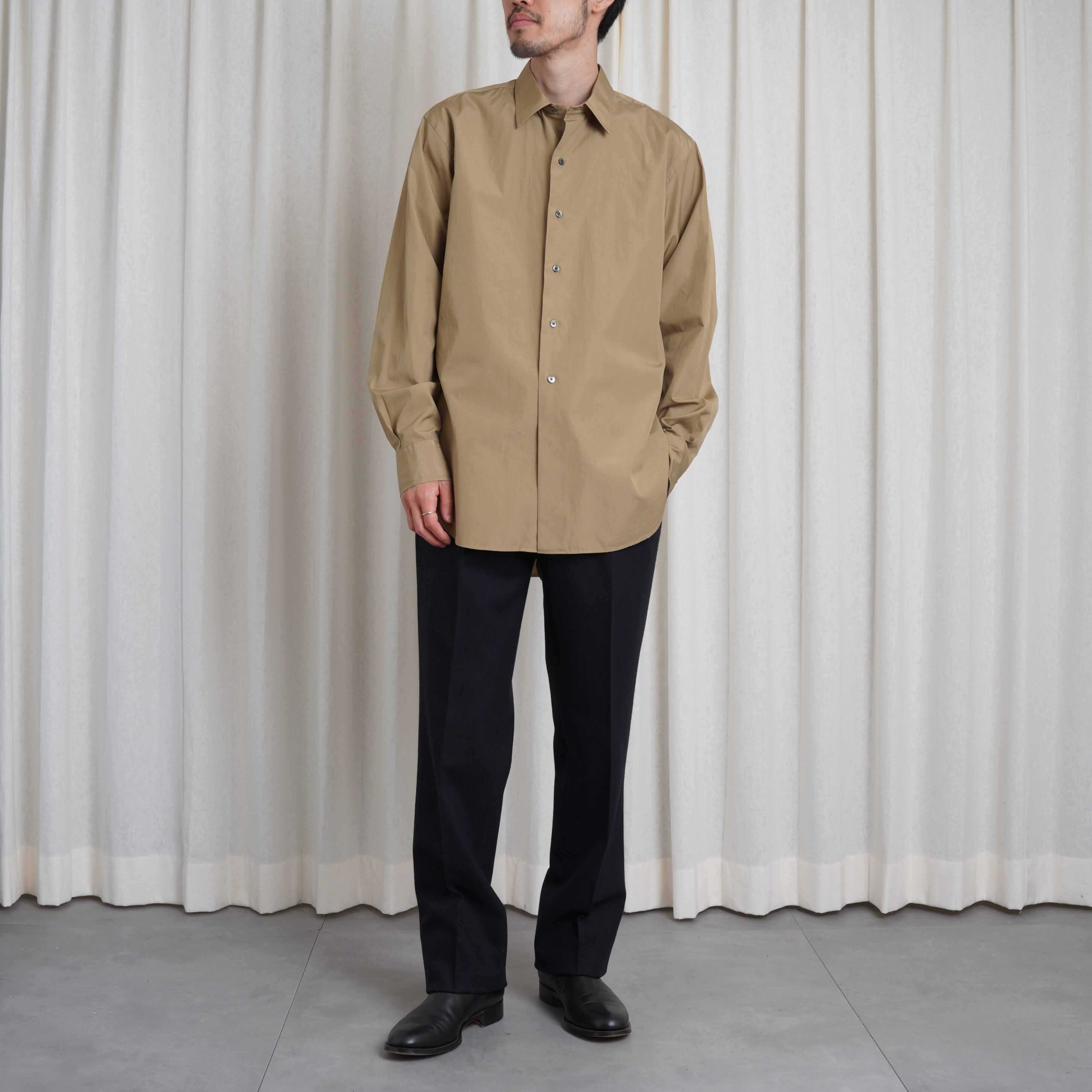 ややゆとりをもたせた身幅と、背中のボックスプリーツが生み出す自然なカジュアル感が魅力です。