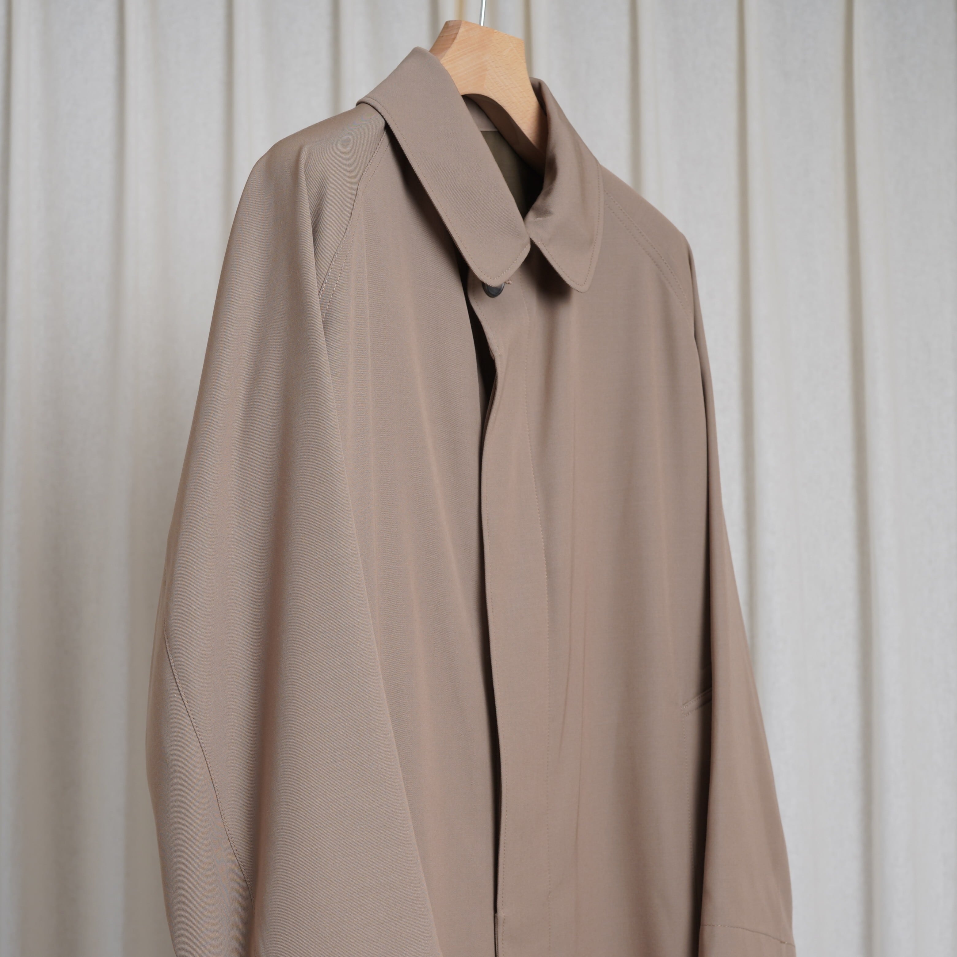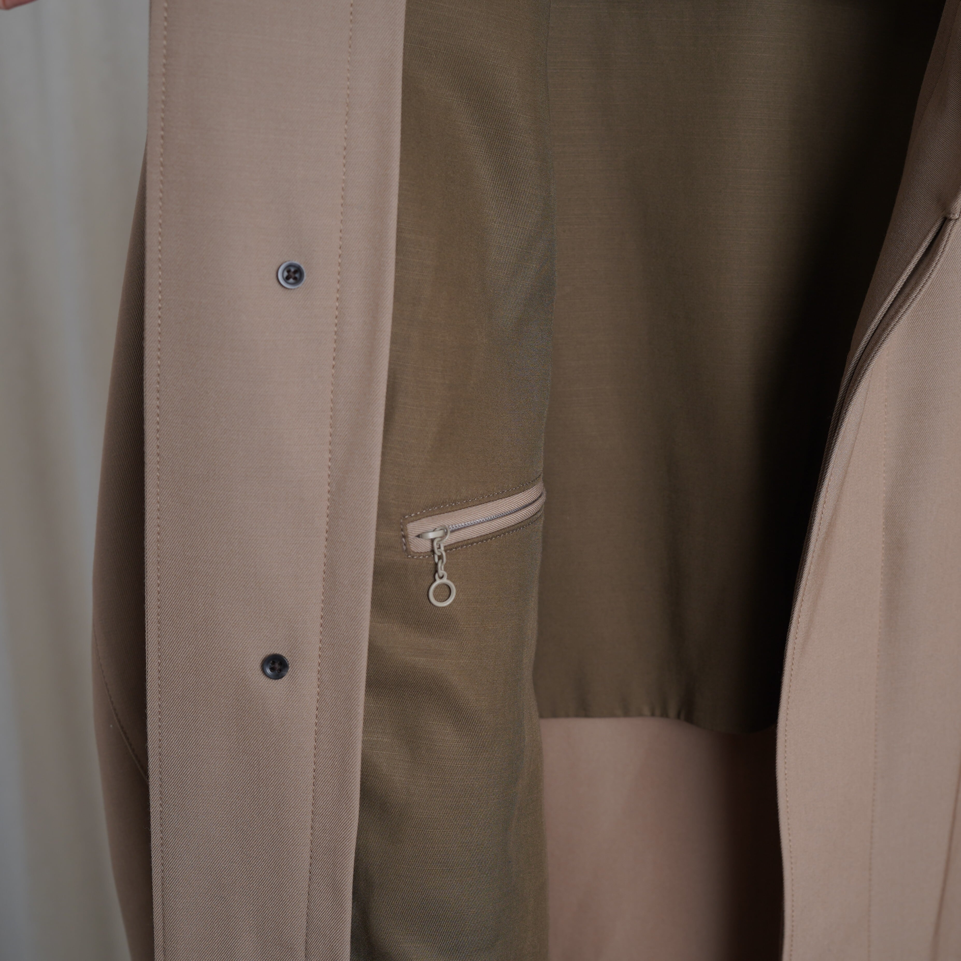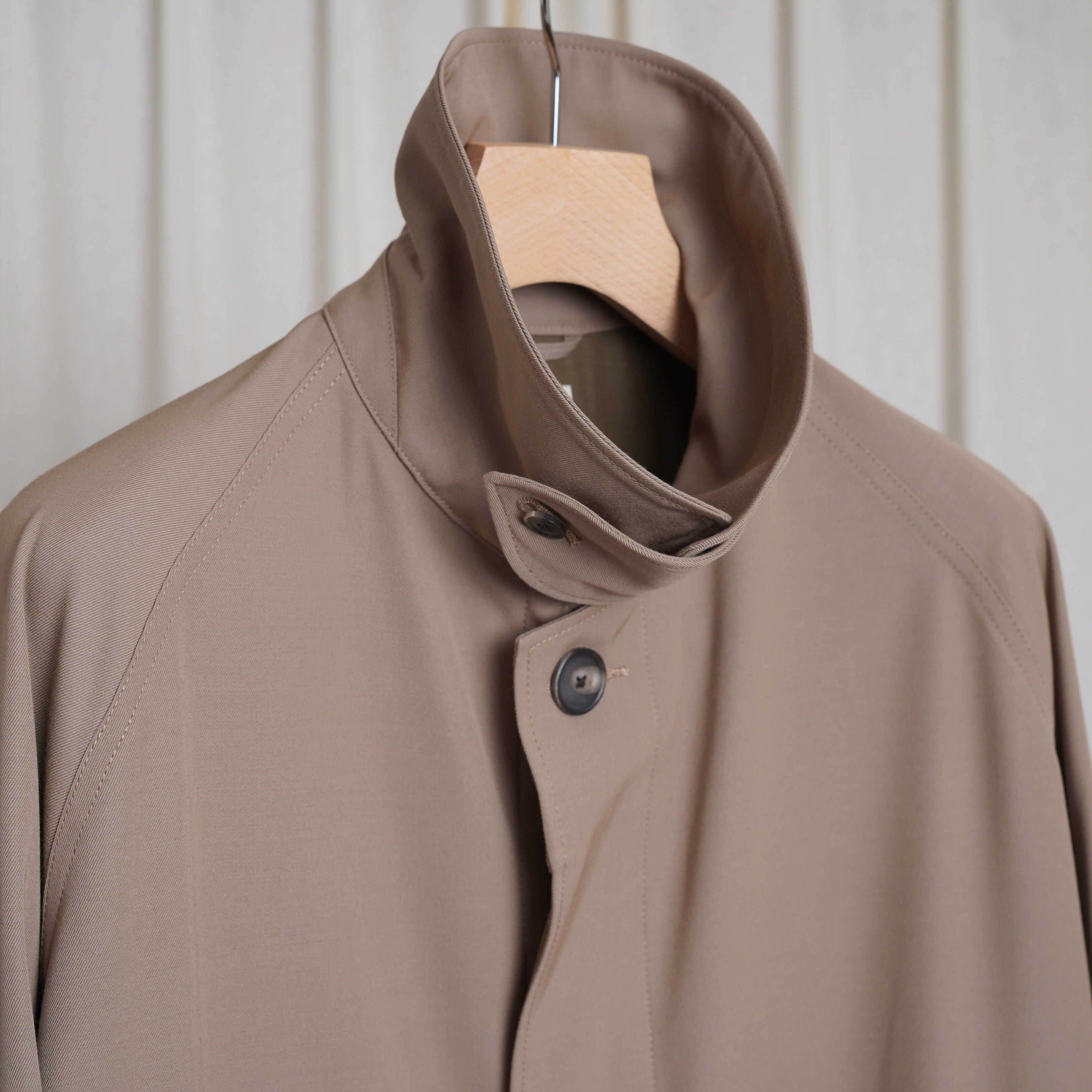フランスの名門 Dormeuil(ドーメル)社が開発した高密度トレンチファブリックを採用。ベージュは柔らかな陰影を生み、スタイルに馴染むニュアンスのある色味。日常のコートとしての使いやすさと、長く共にしたくなる普遍性を兼ね備えています。