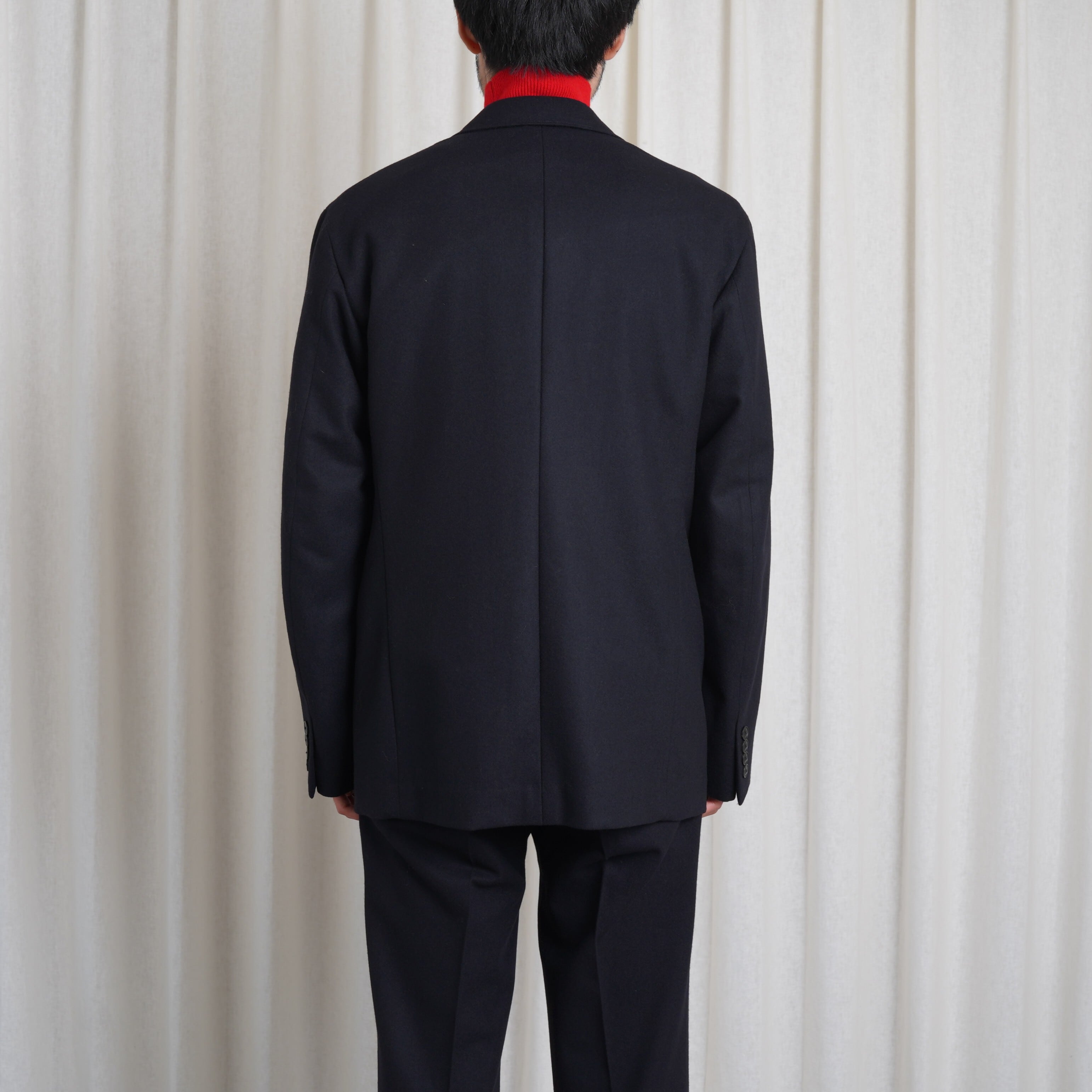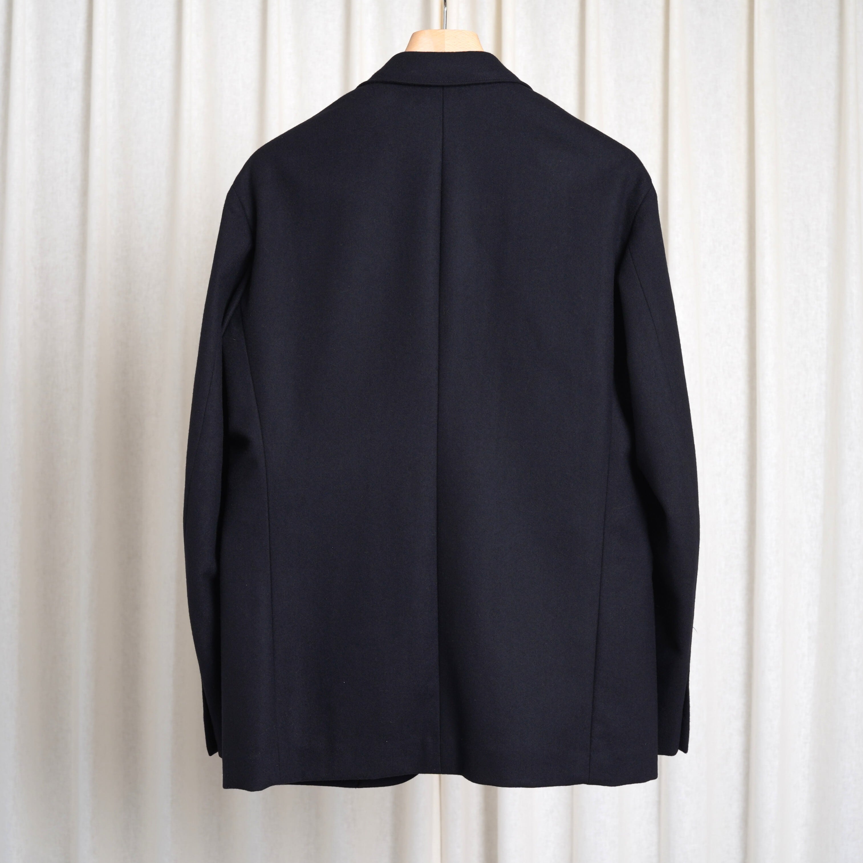 低めに設定したゴージライン、肩まわりに程よい可動域を持たせた自然なライン、動きに寄り添う身幅のシルエット、そしてノーベント仕様による落ち着いた後ろ姿。