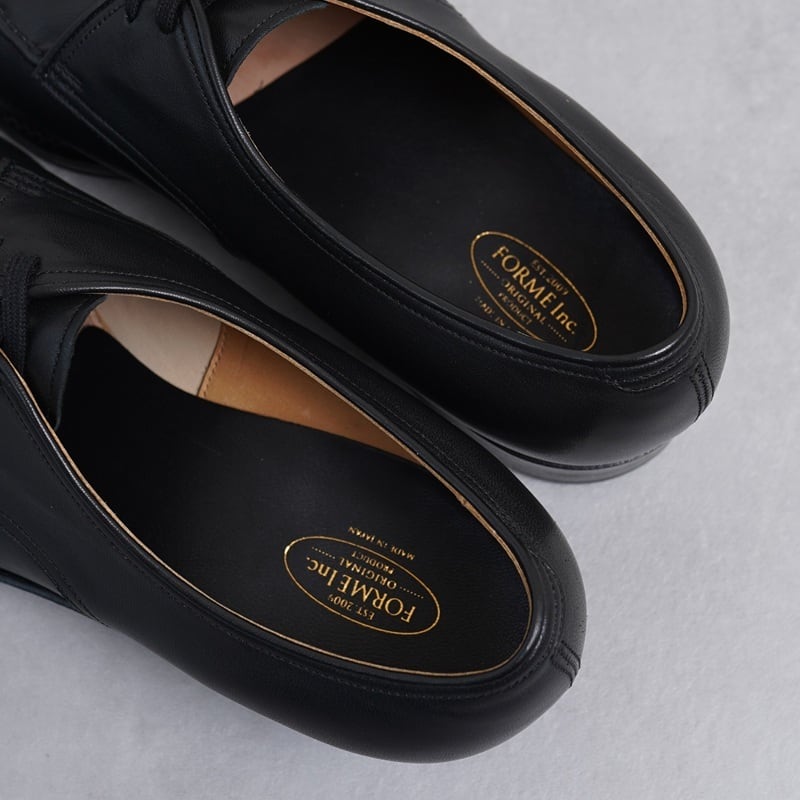 forme フォルメ は、日本の熟練した職人達と共に靴を作っています。靴のベースとなる木型やパターン、構造をデザイナー自身が設計し、職人と密にコミュニケーションをとりながら作られる靴は履き心地が良く長く愛せる靴となります。厳選された材料を使用し、クオリティーの追求に重きを置きながら現代の空気感も捉えた靴を作り続けています。