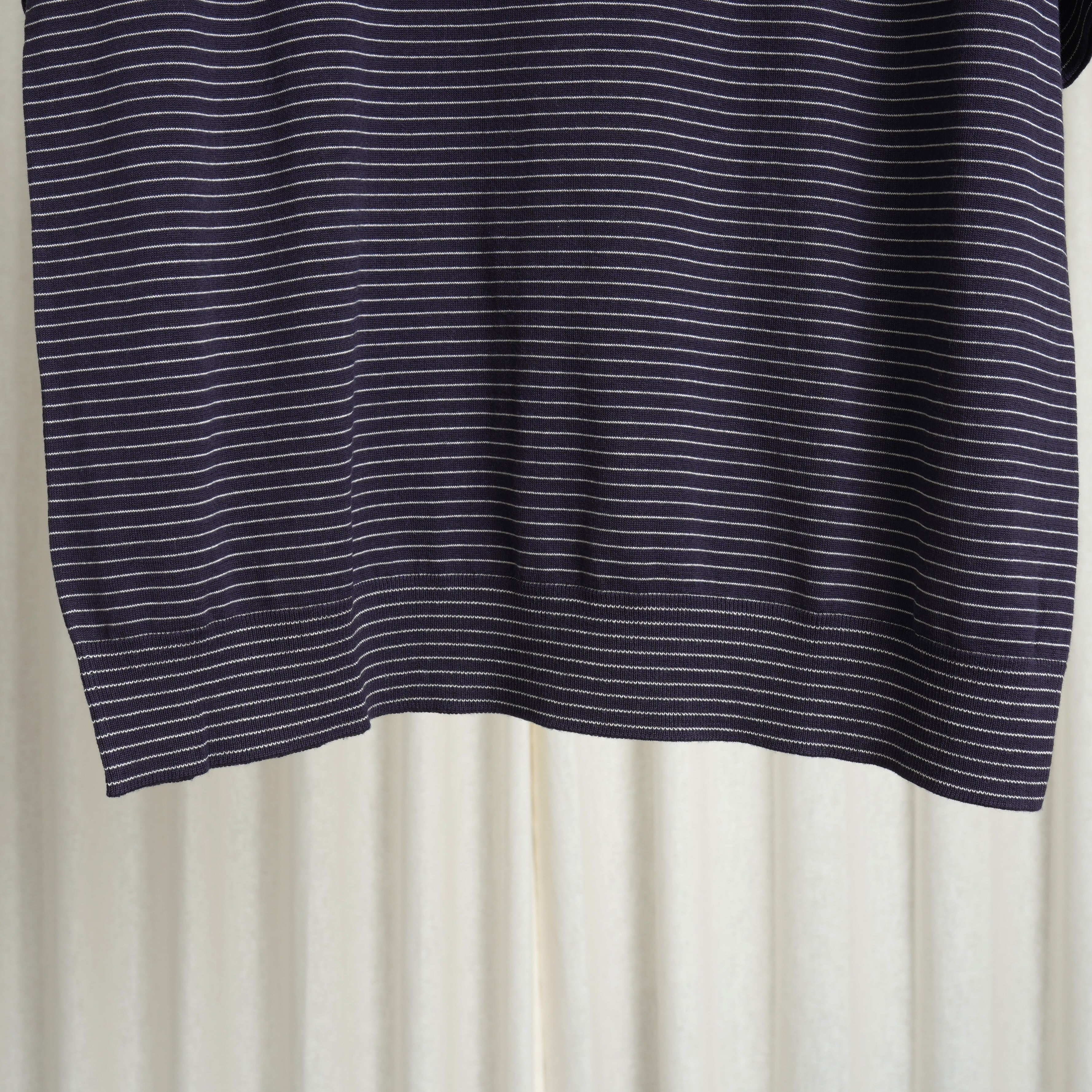 ウール糸を綿紡績で仕上げた原料を使用。カットソー縫製で編みたてられており、素材は柔らかくサラッとした質感に仕上がっております。